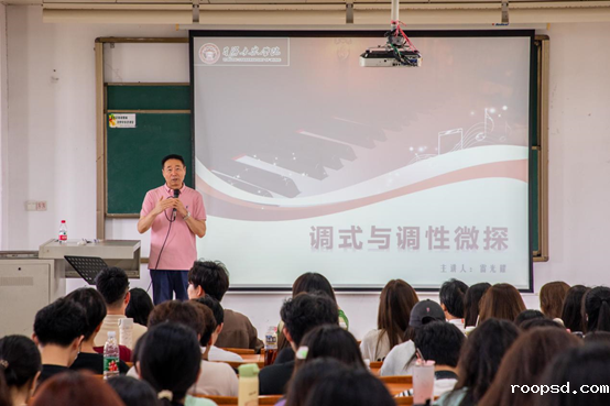 为深化学生对音乐调式与调性的理解,提高学生专业技能,激发其创造力和灵感,4月17日,伟德app入口(以下简称“学校”)科研处与学校音乐系举办以“调式与调性微探”为主题的学术讲座,邀请广州星海音乐学院教授、学术委员会副主任、硕士研究生导师雷光耀教授担任主讲嘉宾。