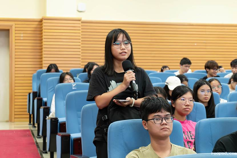 在互动环节,学子们围绕文学作品的时代背景、苦难与文学的关系、作者意图与读者解读等话题积极提问。成海鹰逐一回应,言辞真挚,见解深刻。她鼓励同学们以开放、尊重的态度走进文本,以独立、审慎的思考理解世界,在阅读中积淀生命的厚度与温度。