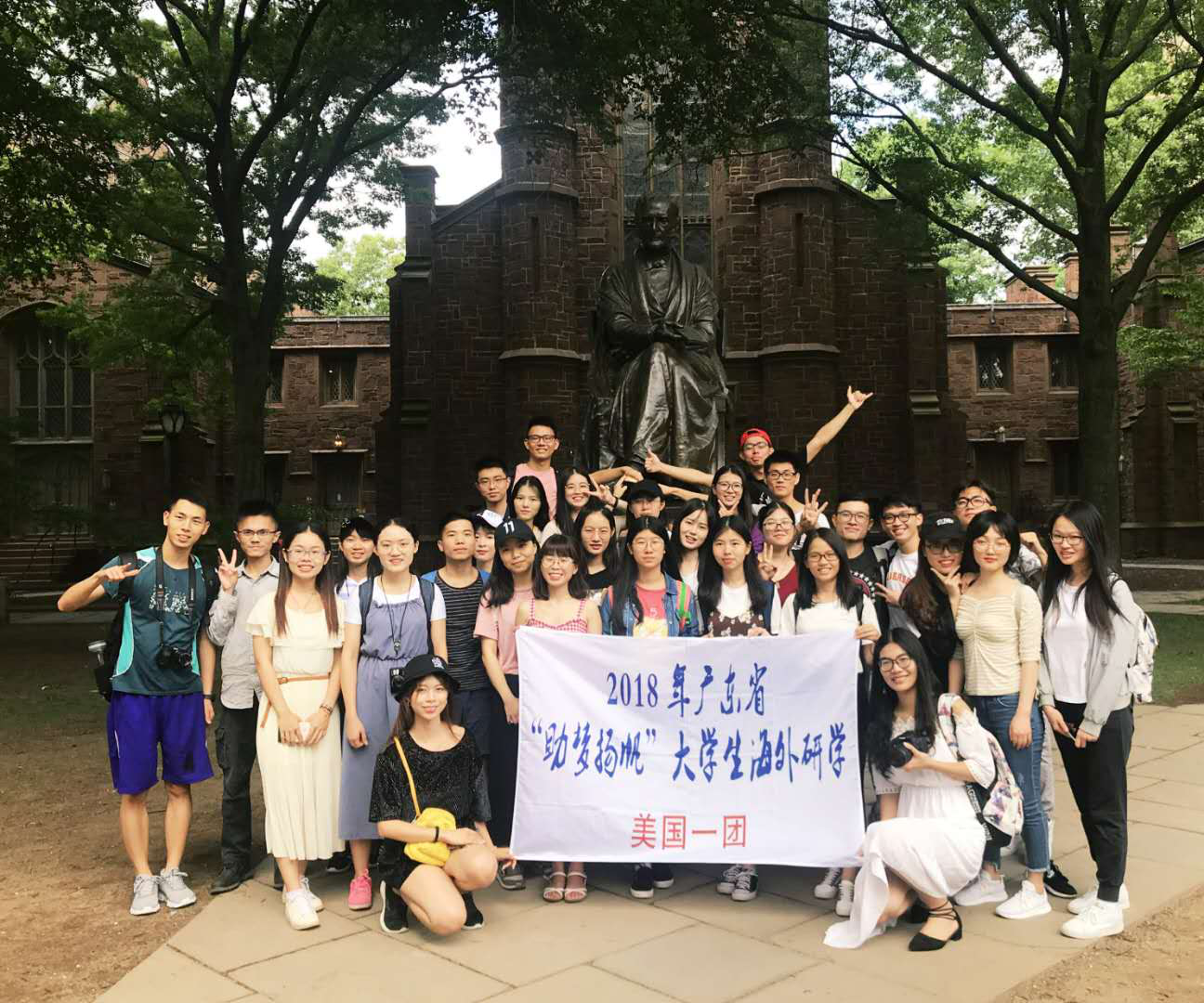 姜文雅同学(二排左五)在耶鲁大学的海外研习项目大合照
