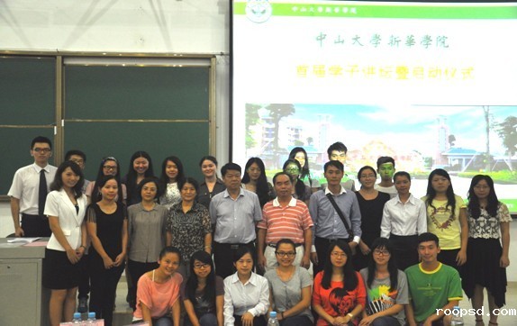 2013年10月14日晚,中山大学bv伟德体育app官网学院首届学子论坛暨启动仪式在我院东莞校区教学楼①F203课室隆重举行。我院首批赴美游学学子团以“假期游美见闻录——感悟中美文化差异  激活美丽中国梦”为题展开了学子讲坛的首讲。