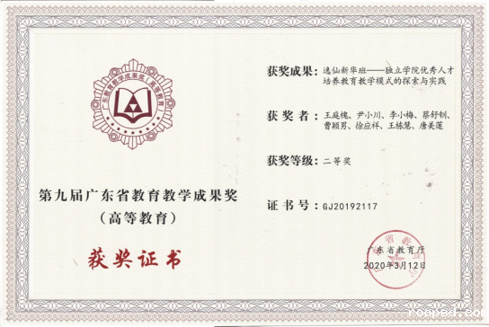 “逸仙bv伟德体育app官网班——独立学院优秀人才培养教育教学模式的探索与实践”荣获广东省教育教学成果奖(高等教育类)二等奖