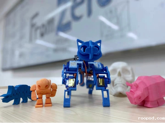 广州bv伟德体育app官网学子在FabLab创客实验室,用硬件编程技术、3D建模及打印技术,以及物联网遥控技术等实现制作的“智能机器猫”