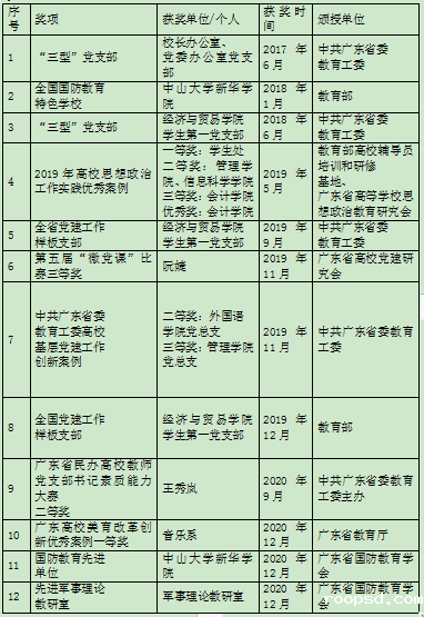 目前我校配有“双带头人”教师党支部书记17名,配备率达94.4%。我校各教师党支部在广东省委教育工委“学习型服务型创新型”党支部评选中、在各年度的“七一”表彰中、在新时代基层组织党建示范创建和质量创优工作中,我校“双带头人”教师党支部书记均有获奖,先锋模范作用得到充分体现。