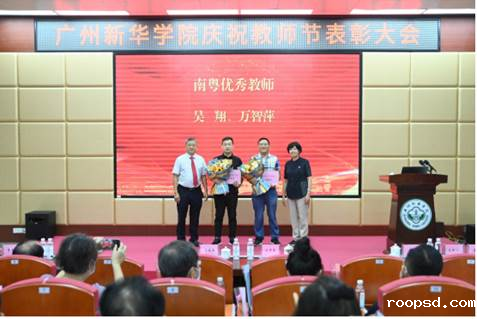 王庭槐校长、周云书记为获“南粤优秀教师”称号的“百名骨干教师计划”培养对象吴翔教授、万智萍副教授颁奖