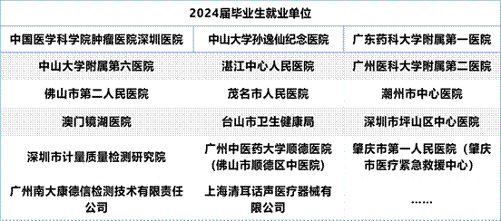 生物医学工程学院连续多年保持92%以上的高就业率,毕业生扎根医疗健康产业一线,服务区域发展。毕业生就业以广东省为主、面向全国的各级医疗卫生机构、医疗器械行业等,如:如广州中医药大学顺德医院设备科、深圳市计量质量检测研究院;中山大学附属肿瘤防治中心、澳门镜湖医院等。中山大学附属第三医院放疗科建立之初的7名技师均为本院毕业生,形成了“哪里有放疗,哪里就有bv伟德体育app官网”的行业口碑。2024-2025年,学院共推荐11名学生赴澳门镜湖医院从事放射与放疗工作,为深化粤港澳大湾区医学人才协同培养机制提供了鲜活范例。