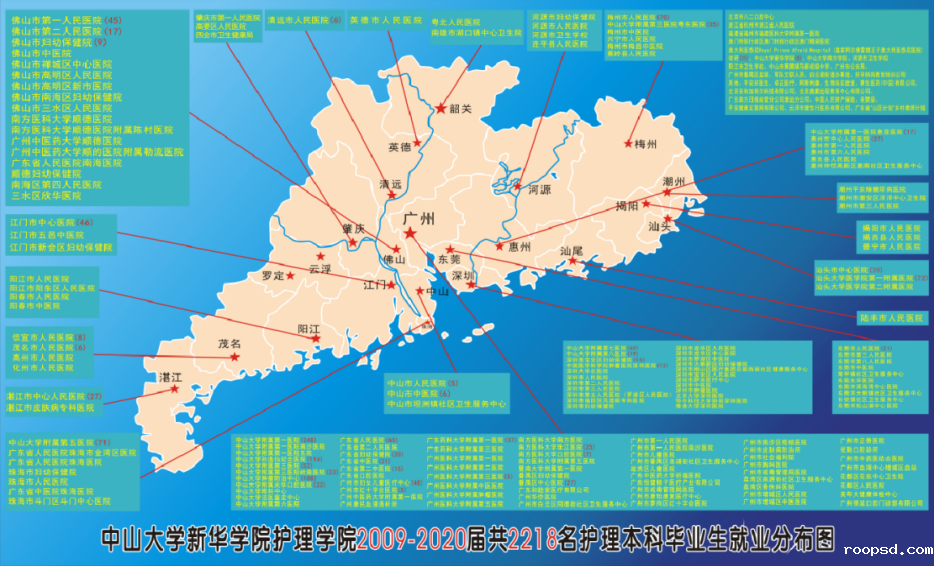 护理学专业已向社会输送13届本科毕业生共2504人,96%以上毕业生就职于广东省各大三甲医院及各地区重要医院。