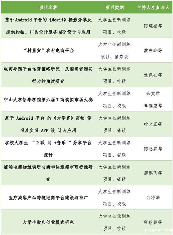 学生参与实践项目情况(部分)