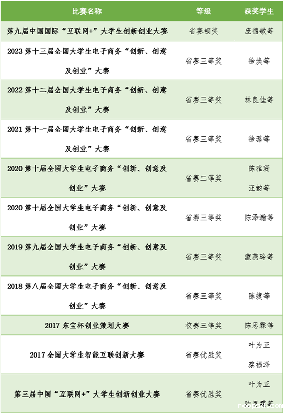 专业持续进行教学改革研究,成立电子商务“第二课程”。专业老师带领学生参加校内外各种比赛、进行大学生创新创业比赛及项目研究等活动,做到以赛促教、以赛促学。