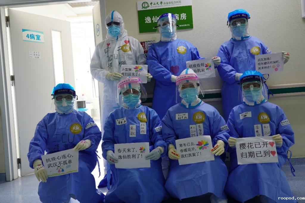 课程任课老师在武汉协和医院西院区病房由中山大学孙逸仙医院组建的逸仙ICU外合影