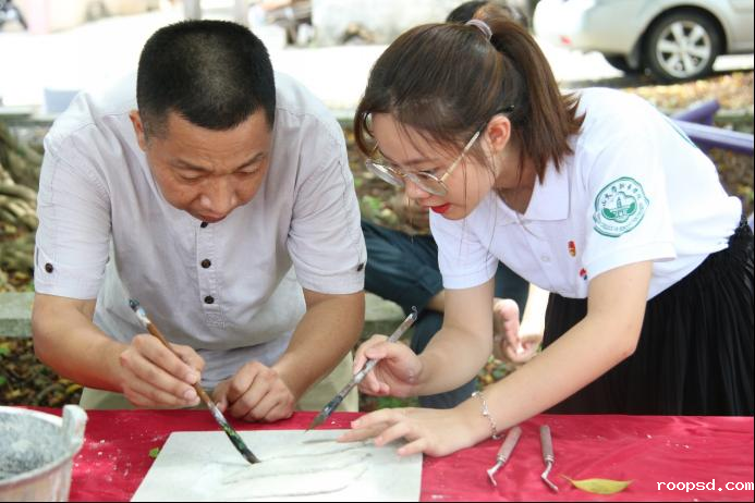 灰塑传承人指导我校“三下乡”队伍“榕树社会实践队”队员创作灰塑作品