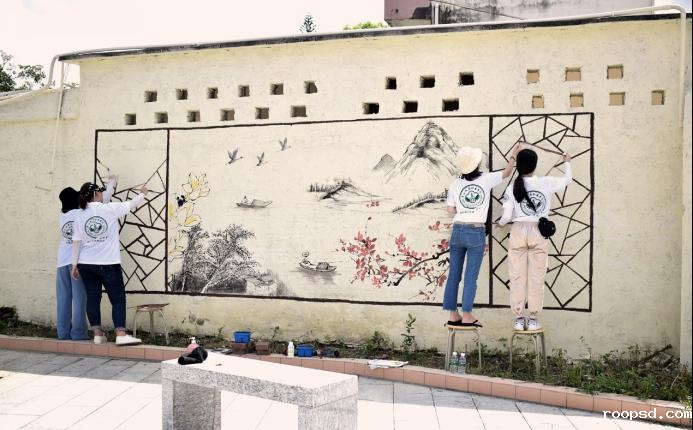 我校“三下乡”队伍“绘乡社会实践队”为乡村建筑绘制山水画