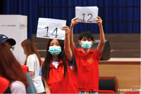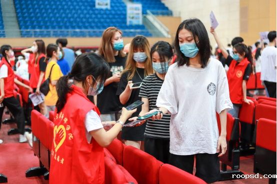校团委组织的180名学生志愿在东莞校区体育馆集结完毕,并迅速有序进行分工、培训。