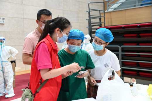 19日凌晨4时,来自麻涌、道滘、高埗等镇街的医护人员刚刚结束上一个核酸检测点的工作,便马不停蹄地赶到伟德app入口体育馆检测点,开展新一场的核酸检测工作。