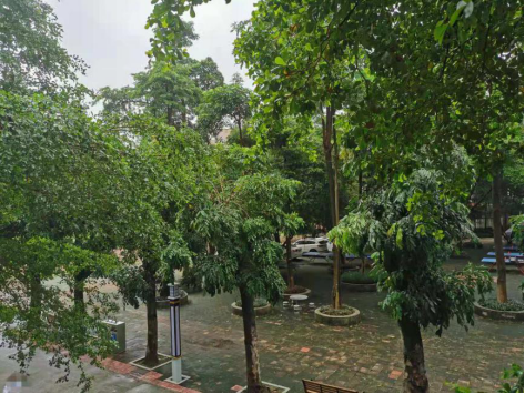 早晨起来趴在阳台,感受新鲜空气的洗礼,霞光在空中晕染,绽放着耀眼的光芒,轻抚着每一朵花儿的面孔,道路上安静得没有一点声响……望着再熟悉不过的校园,仿佛一切又那么陌生。