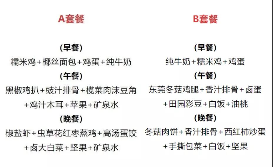 最新公布的“抗疫菜单”颇为丰盛,早餐有糯米鸡、鸡蛋、纯牛奶,午餐和晚餐有鸡扒、排骨、椒盐虾等“硬菜”。佐餐的还有坚果、水果、木耳、蛋饺等配菜。