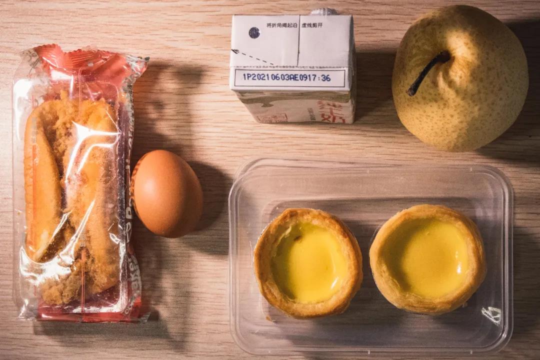 来看看A餐,早餐来个新鲜出炉的蛋挞蛋糕,再配个牛奶,今天的蛋白质稳了。午餐来个虾、猪手、肉片、大白菜,做到了荤素搭配,美味健康。晚餐更是拥有鸡排、牛柳、蒸蛋等“硬菜”。