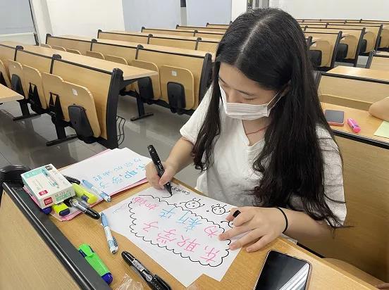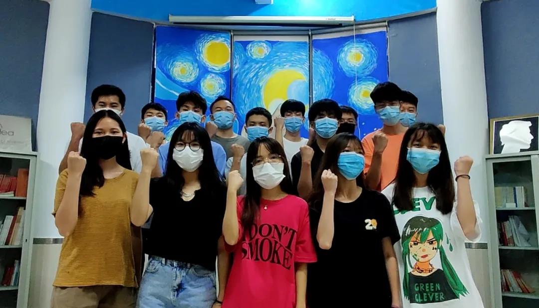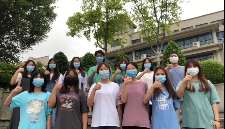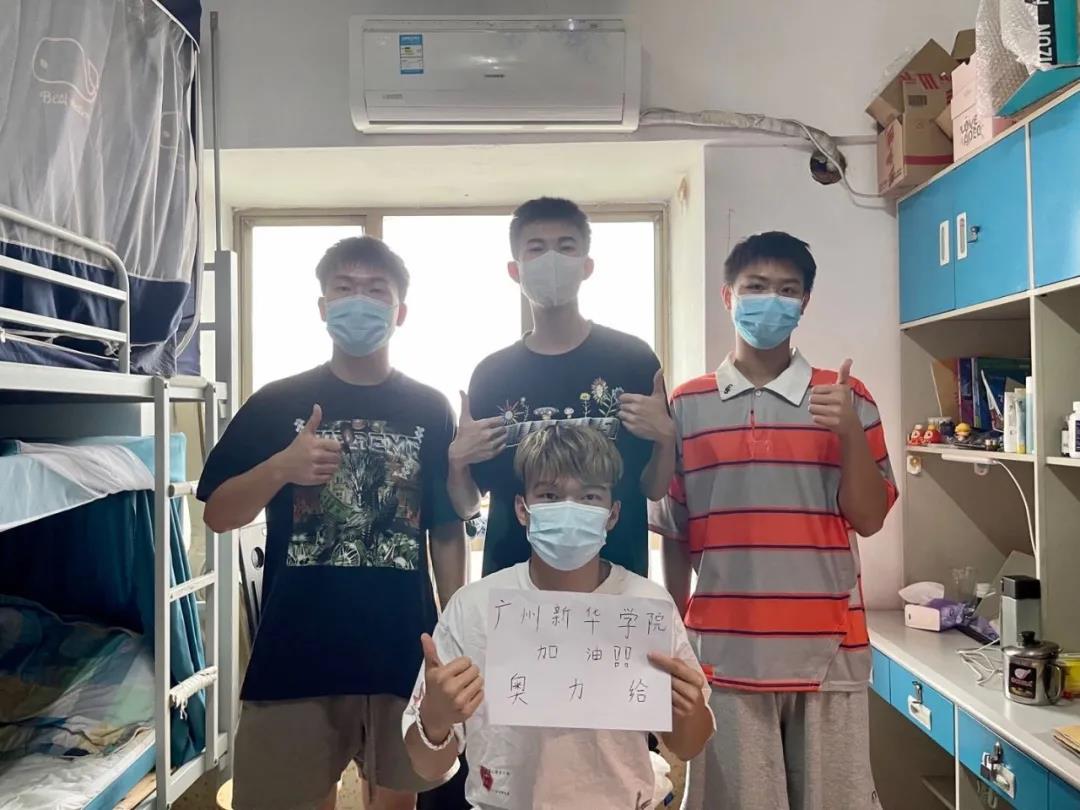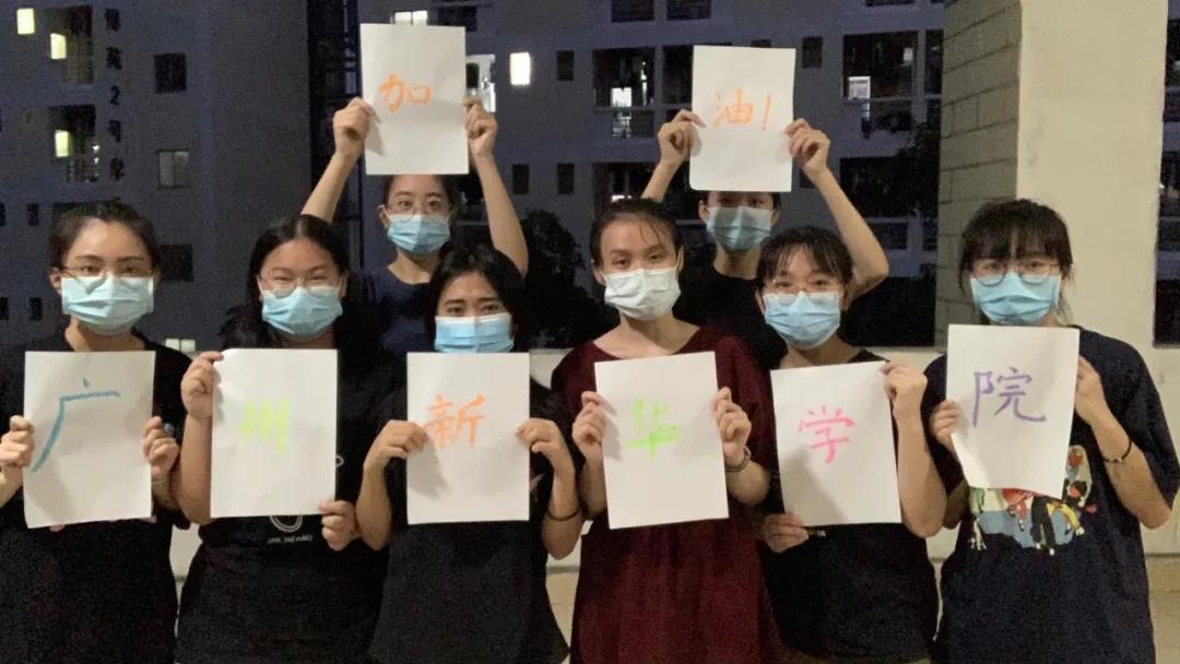 ▲在宿舍阳台上挂着红旗,表达战疫决心。