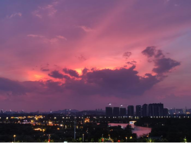 身处于疫情严峻的“决赛圈”,我们服从学校安排做到足不出户,安心在宿舍里学习和生活。长时间待在宿舍里,我会偶尔站立在阳台上,眺望入眼那无限美丽的华阳湖风景。20日的傍晚,当我再次眺望时,粉色的霞光先是被灰暗的云层包裹着,而后霞光缓慢散开,渐渐地弥漫了整个天空,仿佛在告诉我们,“一切都会好的”。粉色洒落在我的内心,压抑的情绪被填埋了。