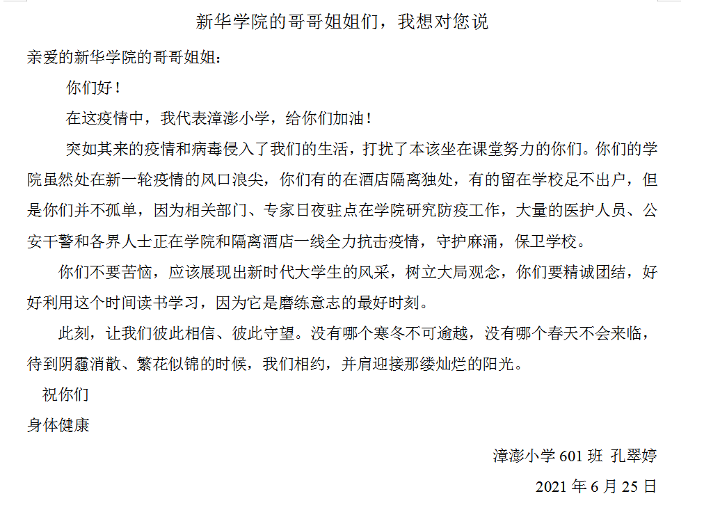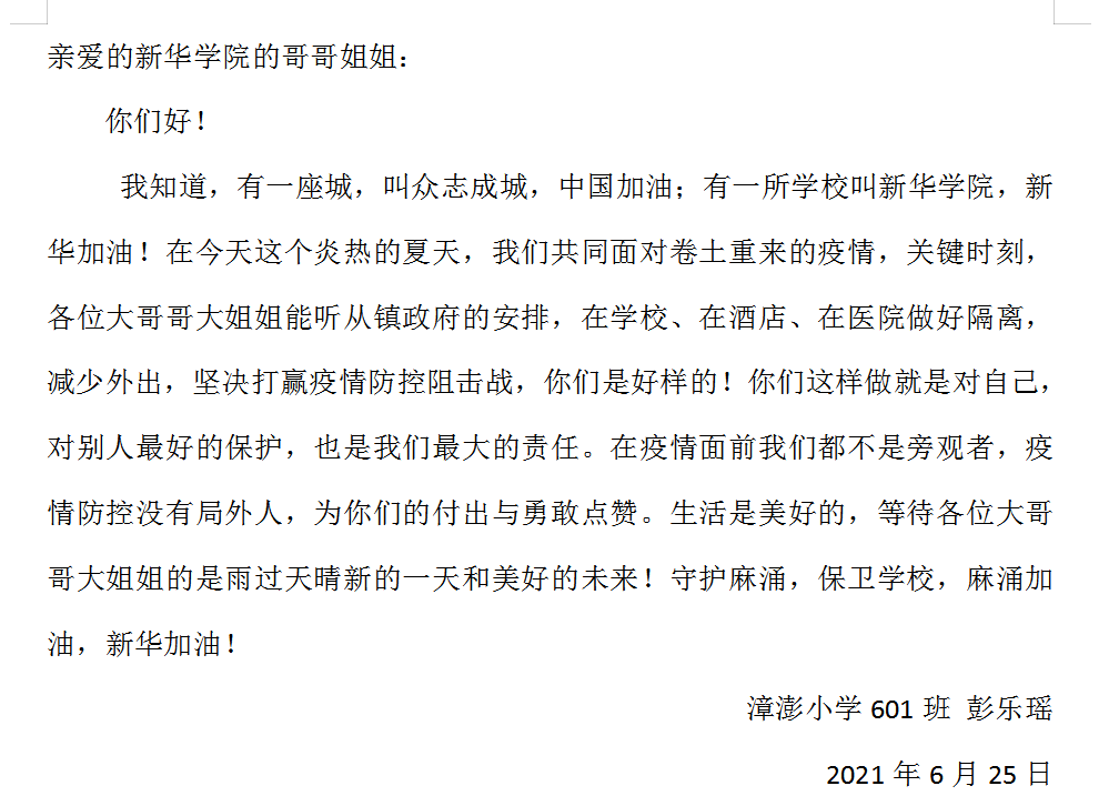 加油|麻涌漳澎小学为 加油