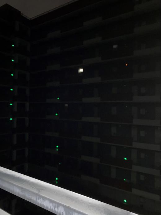 3点半了终于只有一盏灯了,我很开心,就站在对面远远看着这盏灯,心里盼着孩子们快点关灯休息。那个凳子坐久了还是很累人的加上背上的包更累了,我很想把包取下来,但是想着还得再浪费一套防护服,算了算了咬咬牙就坚持下来了。
