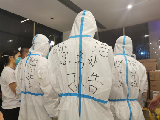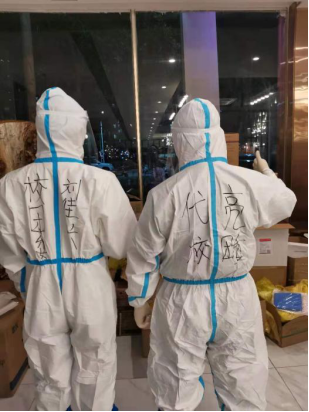 代亮、刘佳兴、陈才燕、陈培鑫、孙浩等同志挺身而出,义无反顾穿上防护服,组成重点隔离区配餐小组。