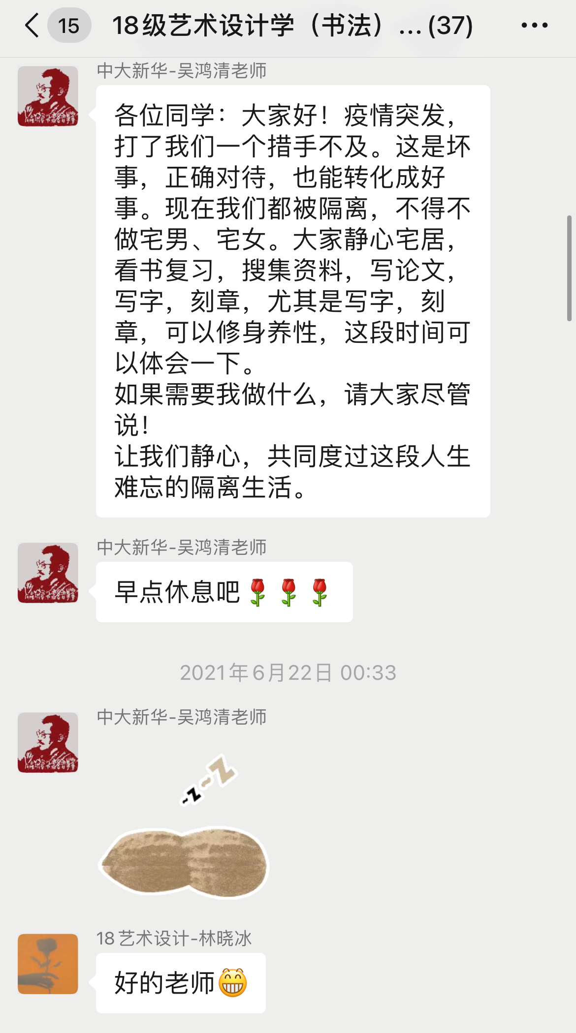 周凡琳老师在校外隔离点为同学们贴心嘱咐