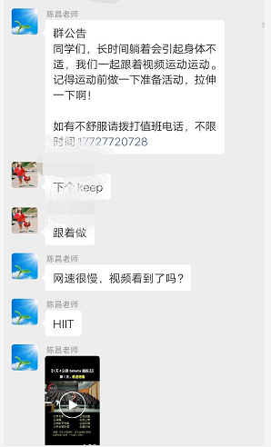 陈昌老师在线鼓励同学们做运动