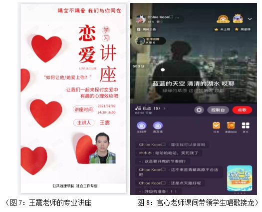 王震老师开展了一场主题为《让我们一起来探讨恋爱中有趣的心理效应吧》的直播与学生互动。孔子有言,“学习在于悟”,老师们虽用了不一样的教学素材,但拥有一样的想法,都希望在疫情期间的师生互动中,学生能够悟出更多。