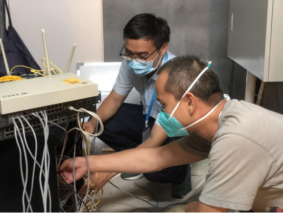 为满足学校东莞校区沁园临时工作点的办公需求,信息与网络管理处火速组织人员奋战20小时对现场进行网络布线,保障用网需求;协调多台打印机,并调试好各电脑与打印机的设置;配置办公座机、办公手机,以便工作人员进行信息核查;安排技术人员在场值班,遇到技术问题及时抢修。其次,部门提出“有会议必保障”原则,安排技术人员会前调试、会后维护,保障防疫时期的会议硬件基础,确保两校区与上级部门会议系统互联互通,各类会议顺利进行。再次, “iXH”开发团队依据最新的防疫数据要求,紧急调整“报平安”填报内容,高效收集学校人员的有关信息,实现精细管理,为上层决策提供数据依据。同时,为解决师生在校园封闭期间内的热水使用问题,连夜组织制作了临时热水卡一千余张,将热水卡及时送到需要的师生手中。