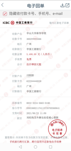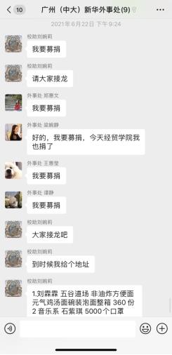 6月22日,刘霖霖校长助理再次发起线上会议,组织外事处全员为学校的抗疫工作出谋划策,大家从多方渠道了解了学校内部的基本状况、商讨采购物资品种、寻找食品批发厂家并开展了募捐活动。外事处全员都参与了爱心募捐,共筹集到5400元,于6月23日汇款至“中山大学