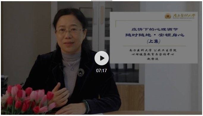 随着疫情的持续,一些心理问题逐渐浮现,既有对疫情的恐慌和焦虑,也有因为长时间宅家而产生的烦躁和抑郁。赵静波教授将从体验环境、放松身体、调整认知、稳定情绪、启动行为、调动资源的6个角度,为大家分享一些实用、简单的小技巧,帮助大家安顿身心,以更轻松的心情迎接抗疫的胜利!欢迎您的观看和转发!