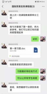 为优化课程设计,更好地提高学生的学习兴趣,国际经济与贸易专业发挥集体协作能力,采用线上课程组备课的方式,精心准备教案。同时,实施专题化教学,将知识点或者技能点分解成若干个15至20分钟的片段教学,并穿插视频或者习题练习,减少学生习疲倦心理,增加课堂趣味性,解决线上教学的课堂管理和临场交互感较差的问题。