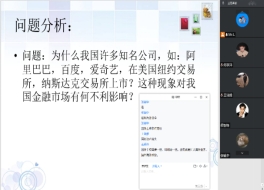 经贸学院教师在线上教学过程中积极融入课程思政元素,通过具体生动的事例,弘扬爱国主义精神、伟大的战“疫”精神,凝聚正能量,引导学生用阳光、积极的心态面对疫情。在《证券投资实务》课程上,梁昌洲老师把近年来的国内外时事热点与课本理论相结合,开展关于维护国家金融市场安全的课程思政主题讨论。有趣的话题让学生们摆脱上面授课时的“羞涩感”,踊跃参与到讨论中,还有学生打开麦克风积极发表观点,课堂活跃度大大提升。