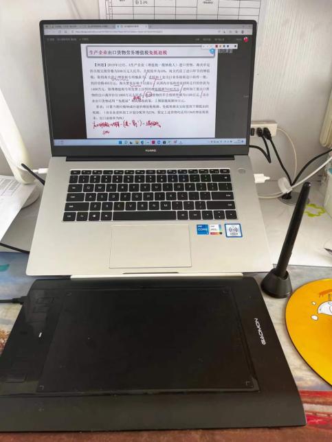 板书是优质课堂必不可少的一环,但是线上教学无法实现板书。为解决这一问题,更好地提升教学质量,经贸学院税收学专业的老师自行购置了数位板、手绘板等线上教学工具,为实现线上流畅地板书提供了硬件保障。同时在课堂线上线下同步课程时,通过手绘板在电脑屏幕中板书,也解决了线上听课的同学观看板书的问题。