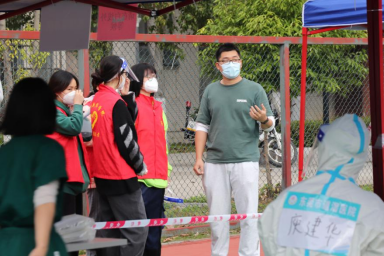 志愿者指引受检人员入场进行核酸检测
