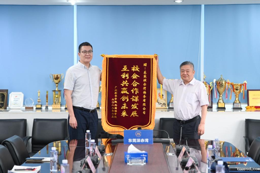 座谈会后,王庭槐感谢东莞深赤湾一直以来对我校应用型人才培养的贡献,向东莞深赤湾授予锦旗,并进行实习基地挂牌仪式。