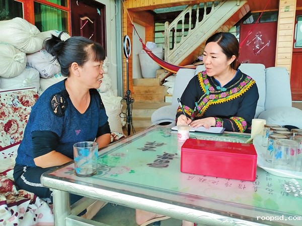 罗文丽(右)到村民家中走访。