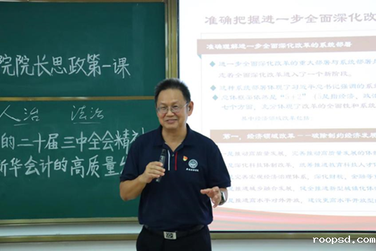 会计学院党总支书记李安兰和会计学院院长刘运国分别为学院师生讲授党的二十届三中全会精神专题思政第一课。李安兰和刘运国通过政策阐释、优秀人物事迹、典型事例等深入挖掘和解读党的二十届三中全会精神的核心要义,立足广东改革开放排头兵、先行地、试验区的定位,立足落实省委“1310”具体部署,结合学院高质量发展的实际,宣讲新时代以来的全面深化改革的生动实践和丰硕成果。