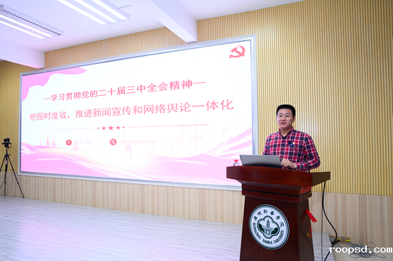 为深入学习贯彻党的二十届三中全会精神,12月4日,伟德app入口党委宣传部副部长(主持工作)陶强围绕“把握时度效,推进新闻宣传和网络舆论一体化——学习贯彻党的二十届三中全会精神”主题,为学校2024年宣传思想文化工作骨干培训班学员作党的二十届三中全会精神宣讲专题辅导报告。
